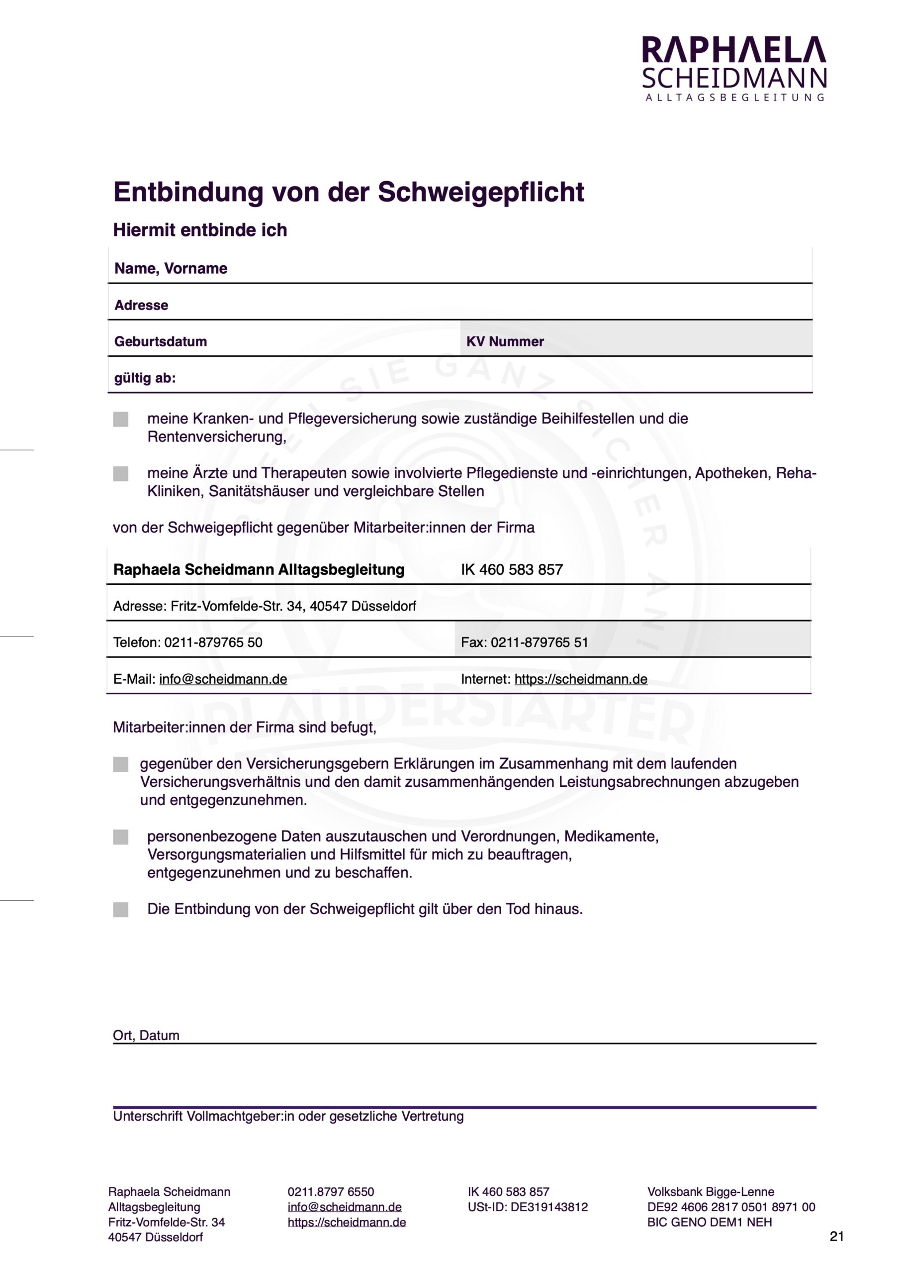 Abtretungserklärung für die direkte Abrechnung mit der PV